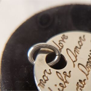 Flat Circular Sterling Silver Disk Tag Pendant with "Love" etched in multiple languages, by unknown local Vancouver Artist.