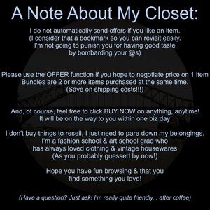 Welcome to Poshmark! May your closet be prosperous. I shall return to browse. Blessed Be ⭐