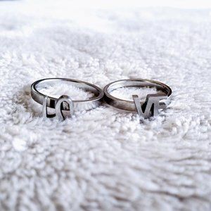 monochrome bright silver metal LOVE letters interlocking stacking double band rings set💘