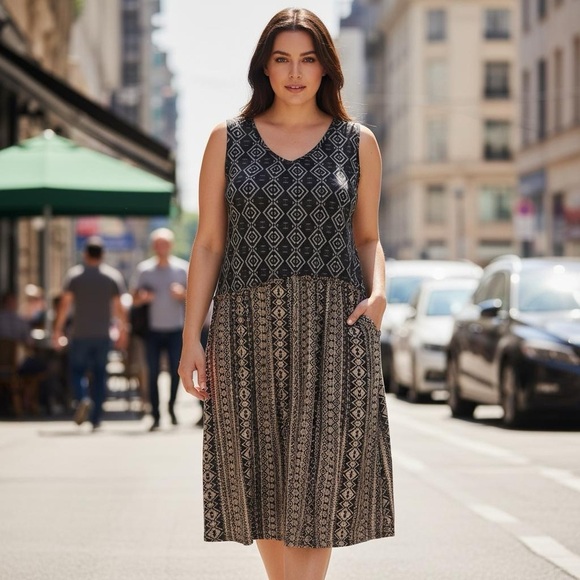 #SuzanneBetro #PlusSizeMaxi #GeometricDress #BohoStyle #NWTDress