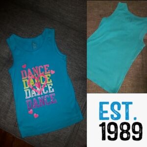 Adorable little girls “Dance Dance Dance” top with sparkly wording and cute heart details.