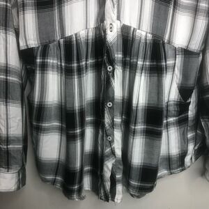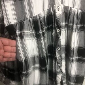 Pre owned. Excellent condition. Black & white plaid button down tunic top. Has pockets in the front.