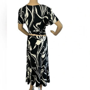 skirt & blouse,matching,ruffle,stretchy, artsy,large floral,quality,timeless.EC
