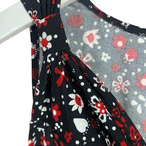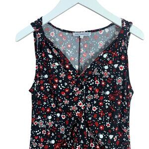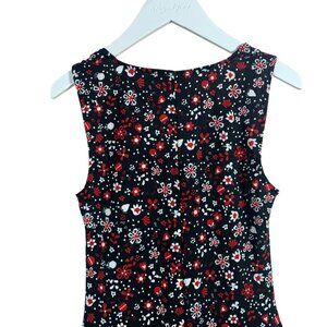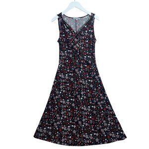 This sleeveless dress is perfect for warm weather days. Featuring a V-neckline and bright floral pattern.