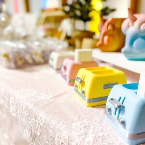These are 3D printed items made from PLA which is a non-toxic material - it is made from renewable natural sources (usually fermented plant starch from corn or other roots).