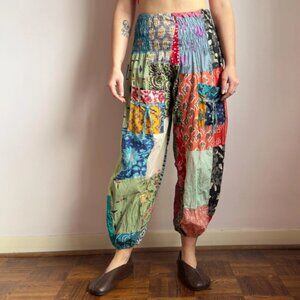 soft cotton loose fit patchwork block print lounge pants