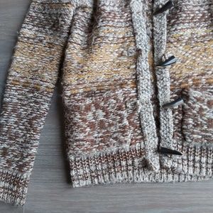 Wilfred Free warm chunky knit sweater with toggle buttons. Super warm, channeling that Canadian grandpa vibe for the winter.