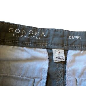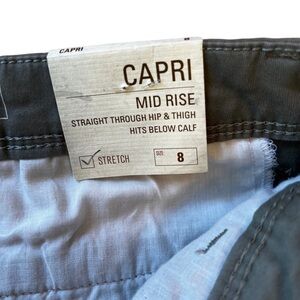 New with Tags khaki green Capris, mid rise with some stretch, size 8, see measurements.