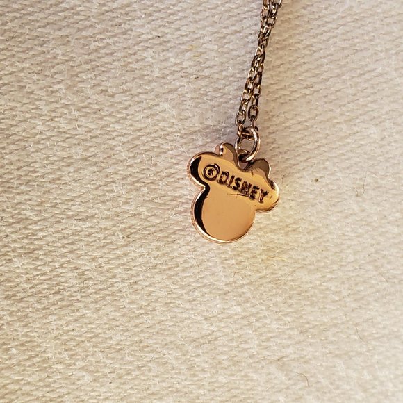 stamped DISNEY Rose Gold Pink October Birthstone Minnie Mouse Pendant 18" chain.
