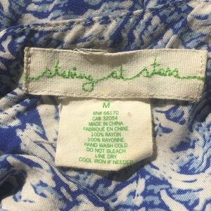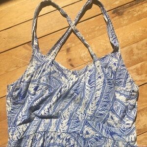 Blue and white button front dress with pockets. Top is lined. Size medium but I feel it is fitting like small. pit to pit 17”. Waist 29”