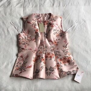 This Stella McCartney top is new with tags. Beautifully adorned with a floral print on the front, this sleeveless top has a well-structured shape with defining contouring seams and a peplum silhouette. Looks great when styled with skinny jeans or a maxi skirt and high heels. The size tag reads IT 46, which corresponds to a US 10 (or a L/XL) according to the size conversion chart.