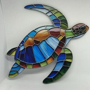 New, unused decorative faux stained glass turtle acrylic suncatcher.