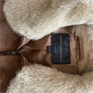 Elegant brown jacket with plush cream faux fur lining. Ideal for a sophisticated style.