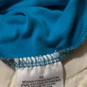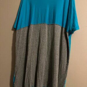 Voglo 2X Rayon and Elastane blue scoop neck top with 1/2 grey back, short sleeved, never worn, been hanging in my closet for a few years, will be ironed before sending