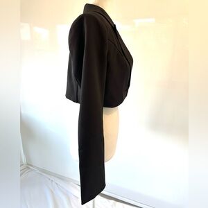 Chic cropped blazer. Sharp lapels. Long sleeves. Perfect for a modern look.