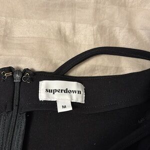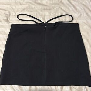 Chic black mini skirt. Sleek design with thin straps. Perfect for any occasion.