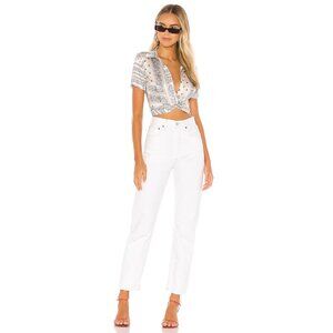 This size Small superdown Jenela Twist Front Shirt in colour Cream & Black was purchased from Revolve clothing in October 2021. It has been washed but never worn.