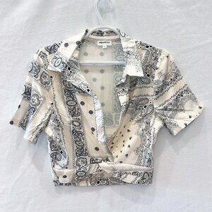 superdown Cream & Black Jenela Twist Front Shirt size Small