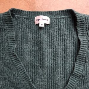 superdown Revolve Ribbed V-Neck Emerald Green Raquel Sweater Size Medium