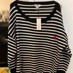 gabrielle ladies knitted sweater, size 2X - black and white strip with a red heart applique