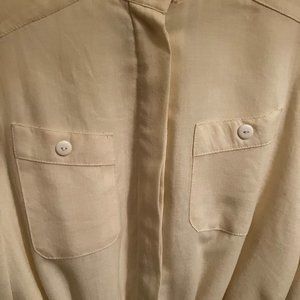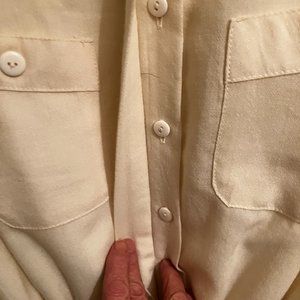 size 8 petite, cream coloured, like new, pockets, body lined, sash belt, virgin wool. can only think the tag poked me so i cut it out. says size 8 but i know size 8 in the 80s is not the same as size 8 now. size 8 in the 50s was not the same as in the 80s, i learned that from my mothers clothes