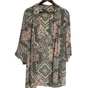 tahari Multi-Patterened Tunic Kimono Flowy Women's Pink/Grey Size L-XL