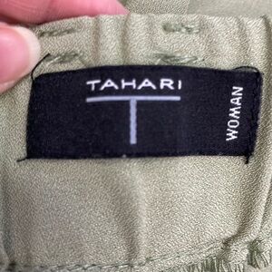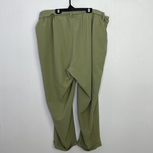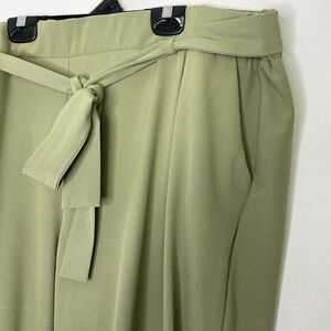 In good second hand condition. 92% polyester 8% spandex. Elastic waist. Matching belt. Manufactured fold bottom. Side pockets. Cropped length. There's a line on one legs but i think it's just from lay it dry. Measure lay flat: waist 21'' hips 28'' rise 14'' inseam 25'' bottom wide 8,5''.