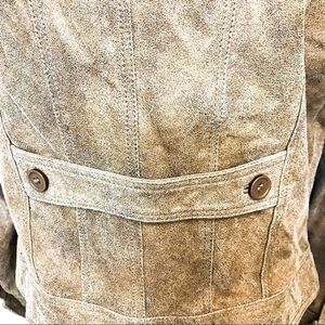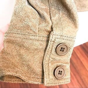 Beautiful coat! High quality leather, lot’s of pockets. Stylized sleeves and front zipper opening. Zero flaws, in perfect condition! Leather is in perfect condition but is more on the stiff sturdy side rather than soft and supple. Size says XL strangely enough but it fits like a large M/L