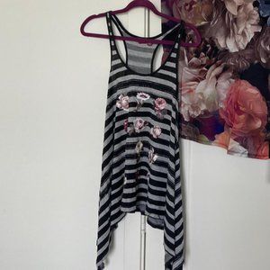 ted baker grey striped pink floral tank top shirt size 0 like new no tags