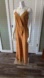 Adjustable spaghetti straps with rose gold hardware. Vneck with snap that can be left open for a deeper cut on this wrap style bodice. Elasticized waist has rose gold button where wrap comes together.