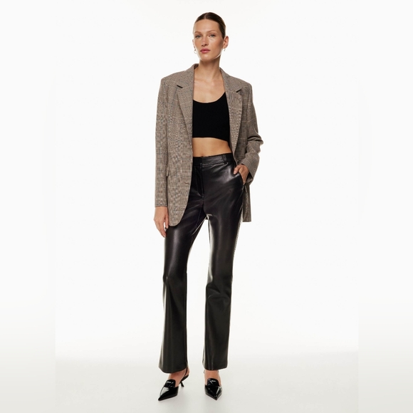 Or into the Program. These are high-waisted flared trousers with slash hand pockets, back welt pockets and a darted back for shaping. They're made with our innovative Vegan Leather that looks and feels like the real thing.