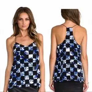 tibi Rococo Checkered Silk Racerback Camisole US 0