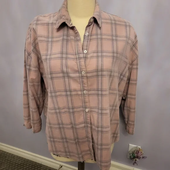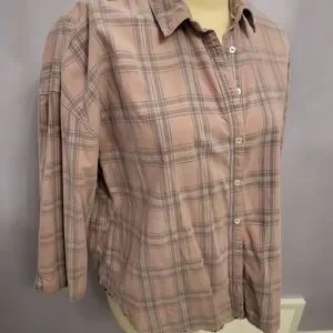 women's top Lucky Brand 100% cotton dusty pink plaid