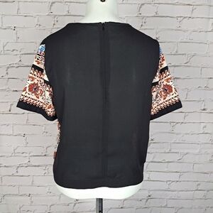 Think bohemian prints for a free-spirited look with this scarf print tee. Features a back panel. 100% Polyester. Machine wash