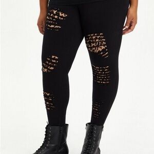 torrid sz 3 Cheetah Print Black Signature High Waist Distressed Ankle Leggings