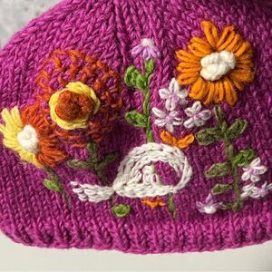 turtle Fur Wool Knitted Embroidered Floral and Bird Beanie
