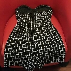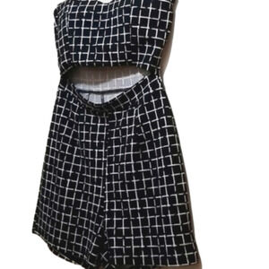 Black and White Striped Romper Dressy Belly Skin and Padded Bra. BUST 28 inches; Waist 23 inches; Length 25 inches. Material is stretchy