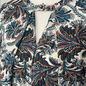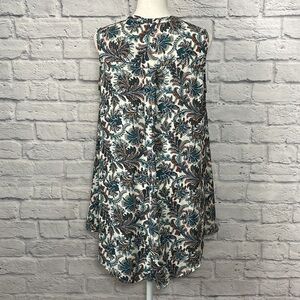 Features: Sleeveless babydoll unlined dress with paisley print, keyhole front, high-low hem, and pleated detailing on front and back.