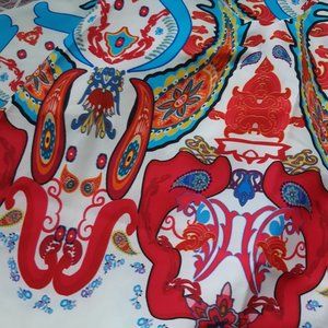 Size small adjustable straps, white maxi slip dress with red& blue paisley pattern light, summery material