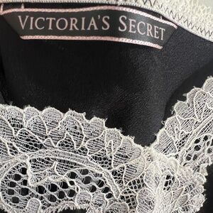 victoria's secret lingerie lace and satin slip dress - black & white, size s