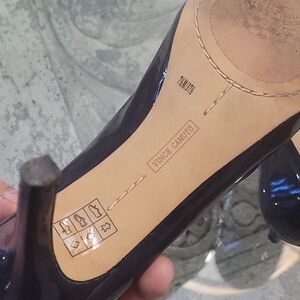 Shine in the office and after hours in a patently perfect pair of peep toe from Vince Camuto,Leather upper and Leather soles Size 7.5 Heels 3" Great condition!