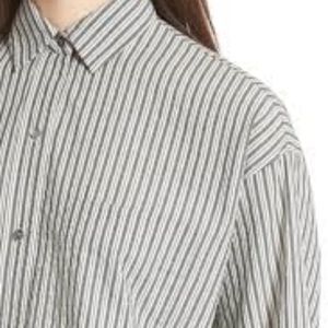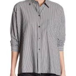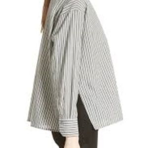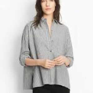 Vince Stripe Boxy Shirt A contemporary cut with drop-shoulder slouch and slit sides brings new ease to a menswear-striped shirt of casually rumpled cotton.