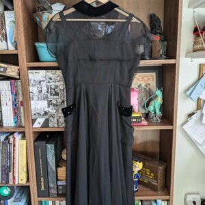 vintage 1950s party / prom dress. Black netting, with circle skirt, velvet and rhinestone details.