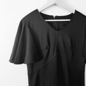 vintage 1970's Midi Black Flutter Fairie Sleeve Dress Size Medium