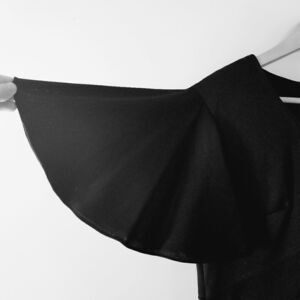 Appears handmade. Butterfly Sleeves. Black Polyester feel. Good stretch.