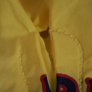 Overall good shape for the age. The raincoat has a small tear in the center under the hood at the seam near where your chin would be. It is not bad at all and not noticeable. Still has the strings and is dated 1984 and made for Columbia Pictures. This is small and meant for a 4-year-old child or younger!