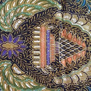 Floral botanical SE Asian batik vibe in mostly golds and blacks
