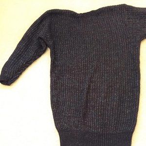 knit, chunky, sweaterdress, v neck, long sleeve, metallic, Italy, ribbed, rib, tapered, mermaid, tulip, midi, retro, shiny, vintage, 80s, 1980s