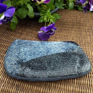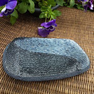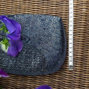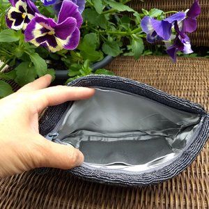 vintage 80s hematite grey seed bead belt clutch set