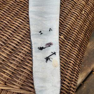 belt has been stored folded, hook and eye clasp are hand sewn on - see pics. not noticeable on the outside when wearing